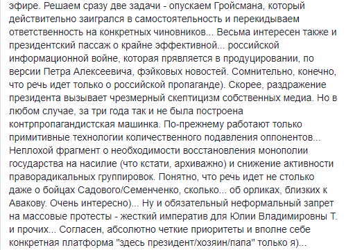 Например, блогера и политического обозревателя Алексея Минакова. Он выделил целых 12 ключевых месседжей из обращения Порошенка к Верховной Раде. А само выступление назвал "мощным".