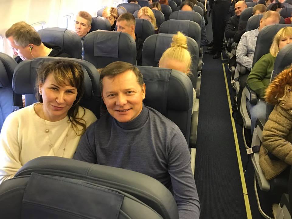 Олег Ляшко и Росита Сайранен в самолете, который совершал рейс Киев-Париж, фото: facebook.com