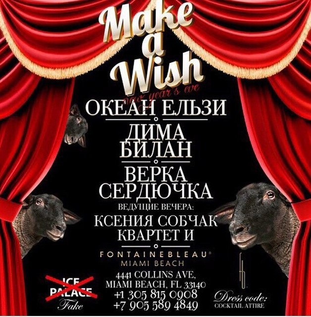 Но в прошлом Вакарчук был открыт к различным предложениям. Например, 2015 год Святослав встречал в Майами (США). Тогда в отеле Fontainebleau Miami Beach грандиозное торжество устраивал известный московский ресторатор Илья Лихтенфельд. Для гостей арендовали бальный зал гостиницы, где выступала украинско-российская солянка: группа "Океан Эльзы" (гонорар тогда за вечер составил $80 000), Верка Сердючка ($30 000) и Дима Билан ($30 000).