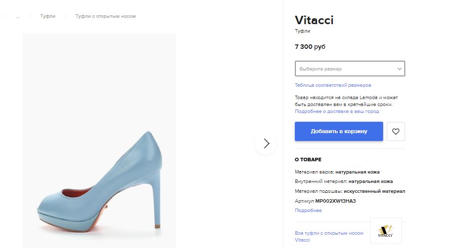 Бежевые лодочки на шпильках оказались от итальянского бренда VITACCI. Марка принадлежит трем братьям, которые ведут бизнес. Бренд также предлагает одежду, обувь и аксессуары для детей. Марка основана в 2008 году.
