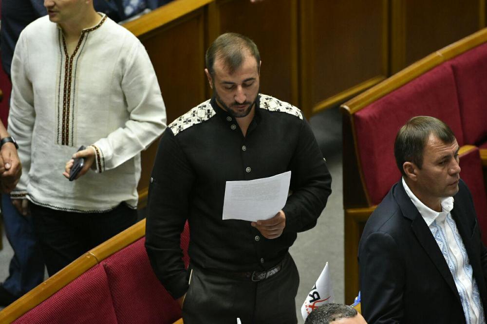 Нардеп-"радикал" Сергей Рыбалка пришел в оригинальной черной рубахе с вышитыми погонами.