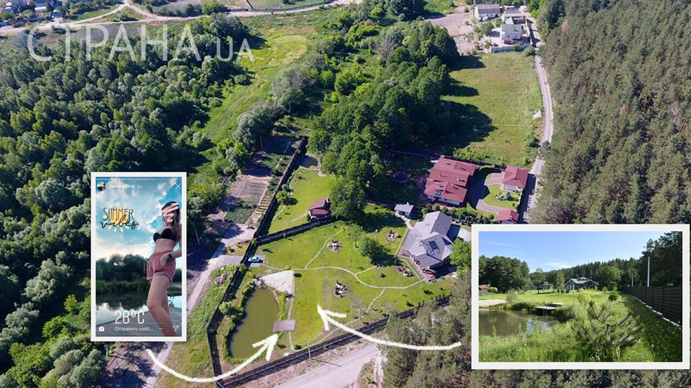 Территория ухоженная. Есть клумбы, зеленый газон и мостик для прыжков в пруд. Просмотрев фотоблог Instagram Сони Таран, дочки Виктории, мы обнаружили ее снимок, где она стоит именно на этом мостике.