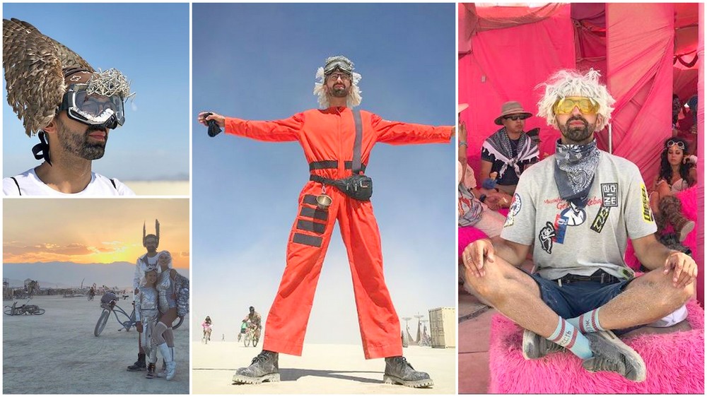 Пустыню превращают в фантастический мир. Те, кто приехал на фест, обязательно должен быть в каком-то невероятном костюме. Лещенко и Топольская успели переодеться несколько раз и продемонстрировать тематические наряды, которые создали мастера из украинской Patoka Studio. Маски с перьями изготовила Леся Патока, а парики с кристаллами - дизайнер Иван Фролов, который одевал певицу Джамалу на "Евровидение"