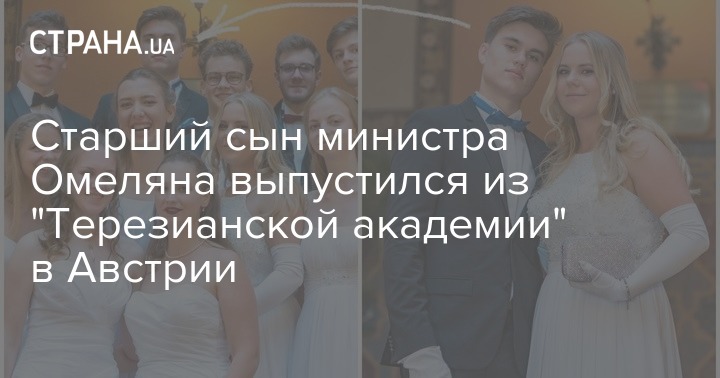 Пока дочки президента Петра Порошенко осваиваются в Лондоне, где обе будут получать высшее образование, "Стране" стало известно, что этим летом старший сын министра инфраструктуры Владимира Омеляна выпустился из открытой гимназии "Терезианская академия" (Theresianische Akademie Wien) в Австрии.