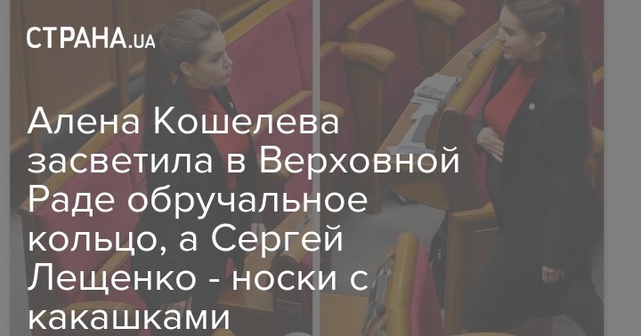 Фотокорреспонденты "Страны" заметили, что на правой руке беременной 28-летней Алены Кошелевой есть обручальное кольцо. В конце прошлого года Алена Кошелева вышла замуж за 34-летного Давида Макарьяна из "Блока Петра Порошенко". О том, что Кошелева состоит в романтических отношениях с коллегой по парламенту "Страна" писала еще в мае.
