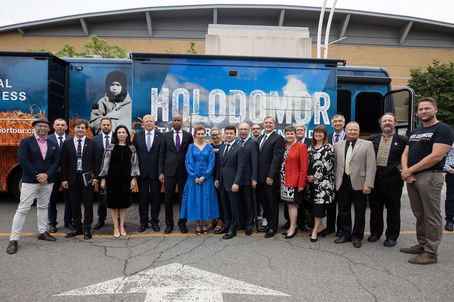 Елена и Владимир возле передвижной мультимедийной экспозиции Holodomor Bus, фото: president.gov.ua