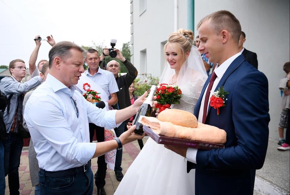 Ляшко приветствует молодоженов в Хмельницкой области, фото: facebook.com