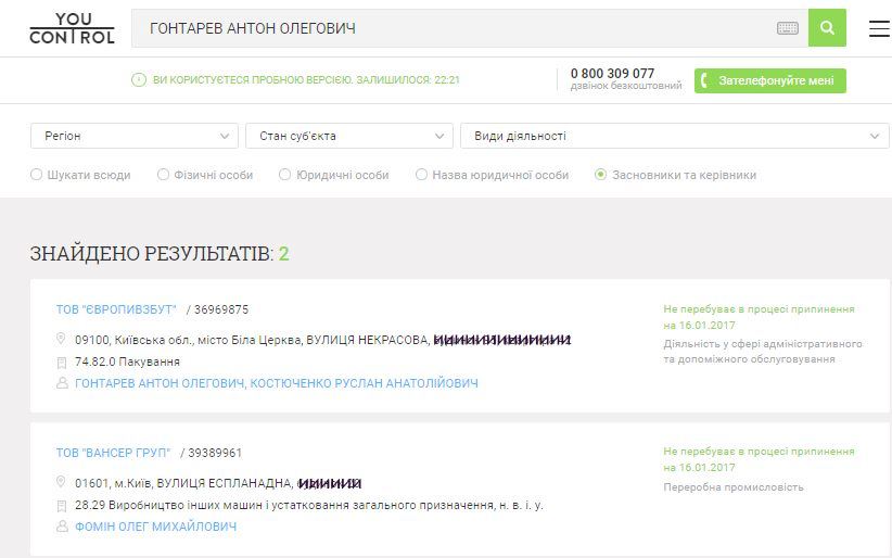 Еще в своей е-декларации Гонтарева указывала, что старший сын Антон владеет 80% ООО "Европивзбут" и третью ООО "Вансер груп". Эта информация подтвердилась в выписках из Реестра предприятий и предпринимателей.