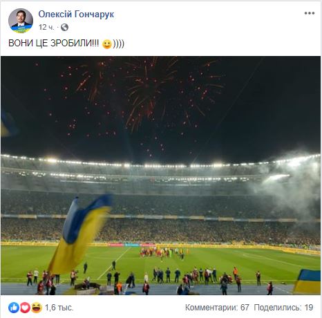 "Они это сделали!", - написал Гончарук. Кстати, Алексей не только болеет, но и играет в футбол
