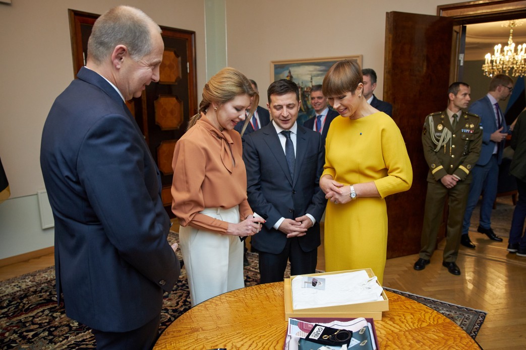 Сегодня президент Зеленский вместе с женой находятся с официальным визитом в Таллине (Эстония). В ходе встречи Керсти Кальюлайд, президент страны преподнесла Владимиру в подарок велосипед и мед, а наша пара в ответ подарила вышиванку и шелковый платок украинского бренда Gunia Project.