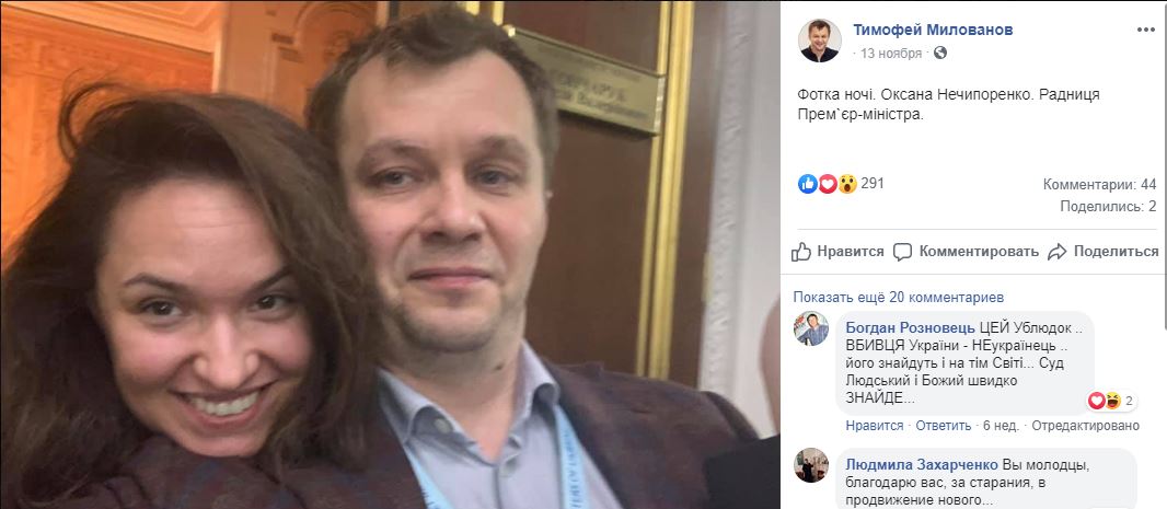 Интересно, что фото с Нечипоренко в соцсетях есть не только у Гончарука, но и у Тимофея Милованова, министра развития экономики, торговли и сельского хозяйства.
