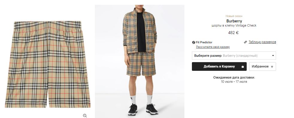 Такие шорты в клетку из новой коллекции стоят €482. К ним предлагается еще ветровка бренда, чтобы получился комплект.