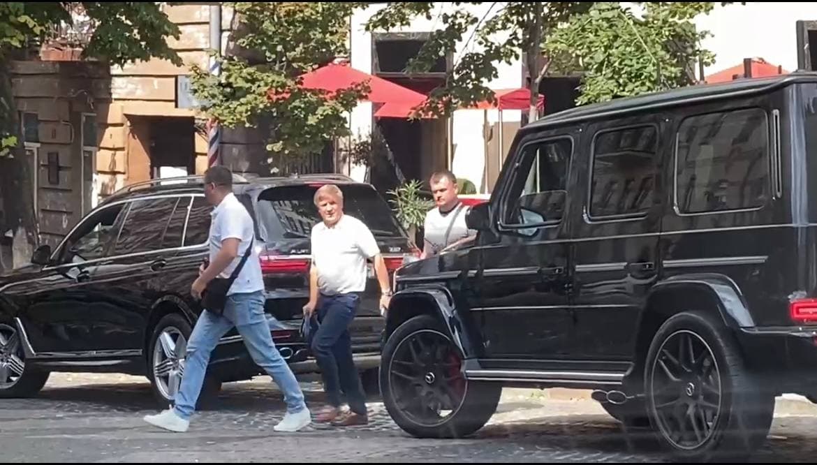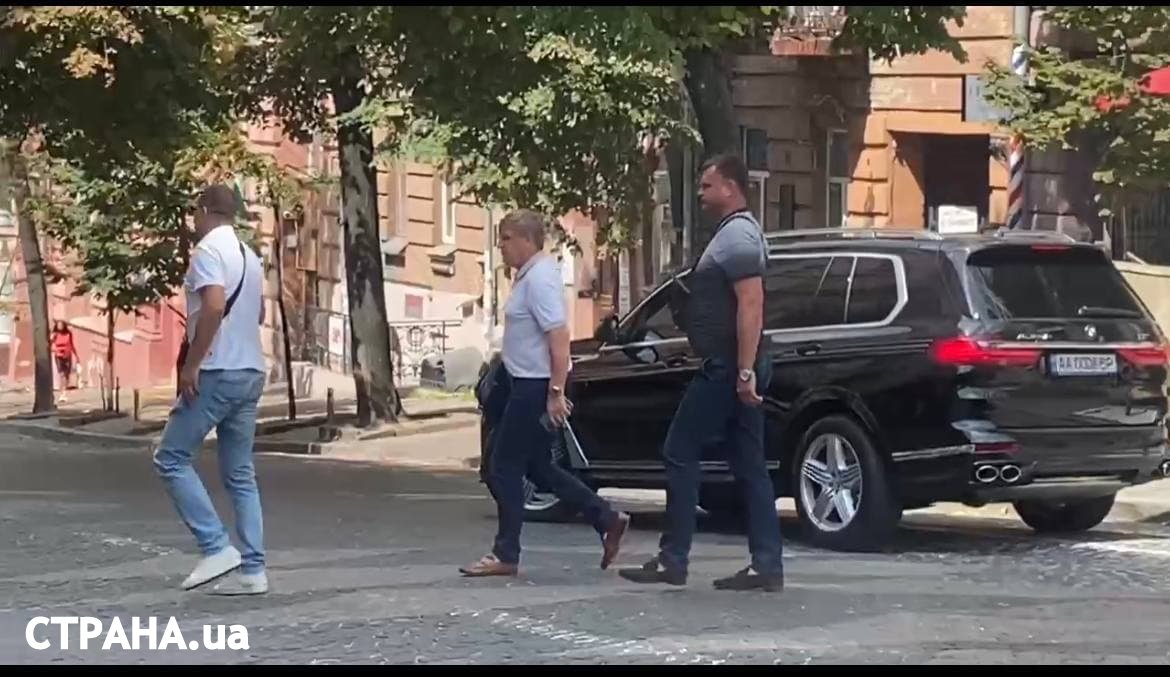 Посреди белого дня мы увидели Александра на улице Городецкого. Он прибыл в "Пассаж", где находятся магазины всемирно известных брендов. Ездит Данилюк на джипе немецкого автопрома BMW, а за ним следует внедорожник Mercedes, который в народе называют "кубик" или "гелик". Обычно в таком сидят бодигарды охраняемого лица.