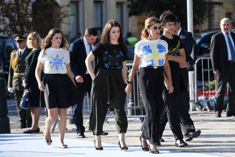 Для торжеств, посвященных 26-й годовщине независимости, жена президента Марина Порошенко вместе с дочерьми-двойняшками Александрой и Евгенией выбрали одежду от украинского бренда Oksana Polonets.