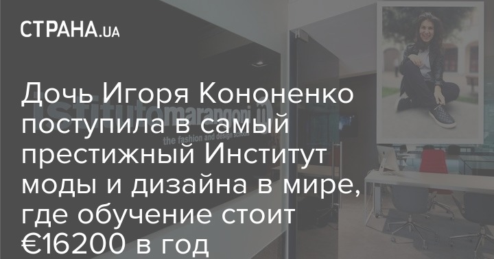 Младшая дочь Игоря Кононенко, влиятельного нардепа от БПП - стала студенткой. По окончании в Швейцарии школы TASIS (The American School in Switzerland) Ольга Кононенко поступила в вуз. Теперь на протяжении трех лет (бакалавриат) она будет получать образование в Институте моды и дизайна Марангони (Istituto Marangoni).