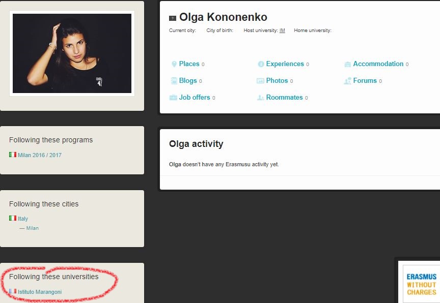 Страничка Ольги Кононенко на Erasmusu.com