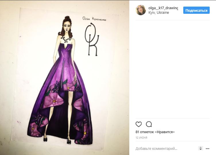 Мы нашли аккаунт Оли Кононенко в Instagram, созданный специально для ее работ и эскизов. Стоит отметить, что девушка действительно неплохо рисует.
