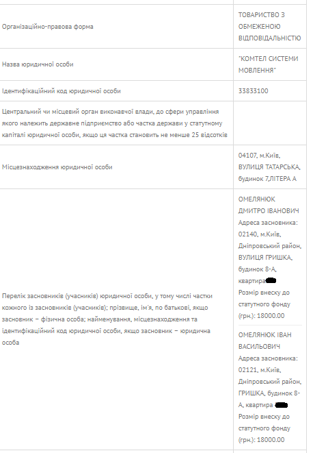 Владельцами ООО "Комтел", согласно данным госреестра юридических лиц, являются Иван и Дмитрий Омелянюки. Они же являются собственниками ООО с похожим названием – "Комтел системы вещания":