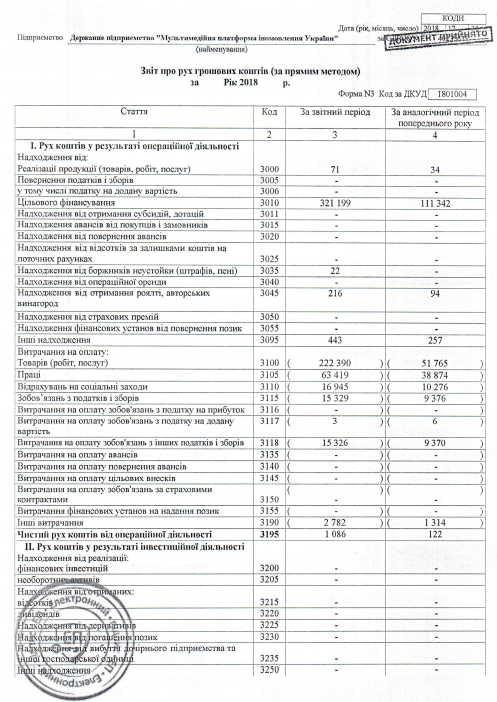 Согласно отчету о движении денежных средств, опубликованному на сайте предприятия, в 2018 году оно получило 321 млн грн целевого финансирования. Из них 222 млн были потрачены на закупку товаров и услуг, еще 63 млн – на оплату труда: