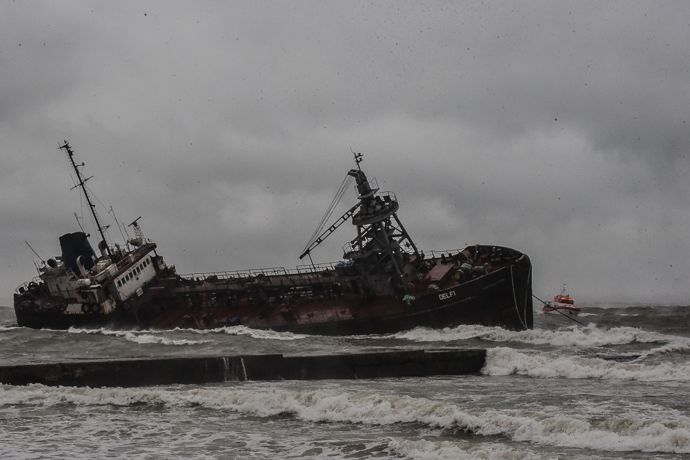 В ночь на 23 ноября к одесскому пляжу Дельфин прибило штормом малый танкер Delfi. Судно терпело бедствие в Одесском заливе несколько часов, не пытаясь зайти в порт, и не подавало сигналов SOS. В итоге танкер совершил навал бортом на волнорез. А экипаж из трех человек пришлось эвакуировать в сложных условиях – все трое моряков были госпитализированы с обморожениями в одесские больницы.
