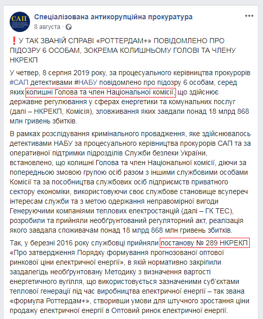 Им инкриминируют ущерб на сумму больше 18 миллиардов гривен, который был нанесен вследствие принятия постановления № 289, которое согласовал Юрий Терентьев: