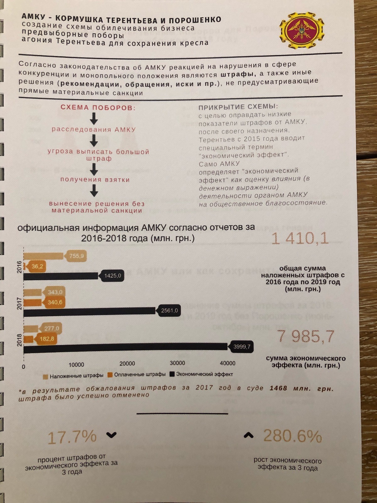 Кроме тендеров, АМКУ может штрафовать (или не штрафовать) монополии. Здесь у Терентьева тоже огромные возможности для маневров в нужную сторону.