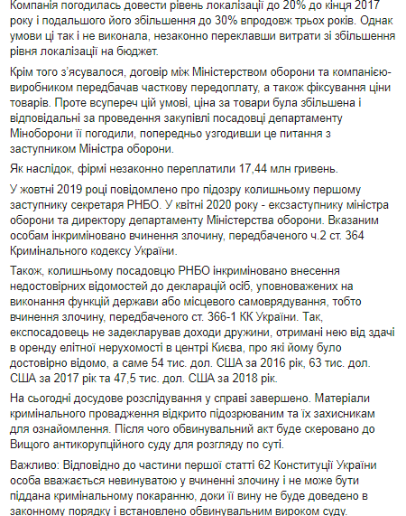 В июле из уголовного производства было выделено новое, под № 52020000000000419, по двум подозреваемым. Об этом НАБУ само сообщило на своем сайте: