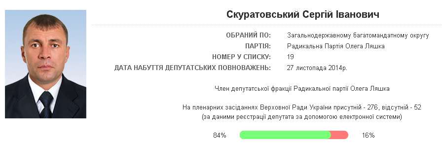 Весной прошлого года Скуратовский вместе с Ляшко летал на отдых в Дубай, а в это время его карточка участвовала в голосованиях. Для этого, как сообщала "Страна", на рабочее место Скуратовского время от времени садился его коллега по фракции Дмитрий Линько - автор знаменитого доноса о "вымогательстве", из-за которого в начале лета главный редактор "Страны" Игорь Гужва несколько дней провел в СИЗО.