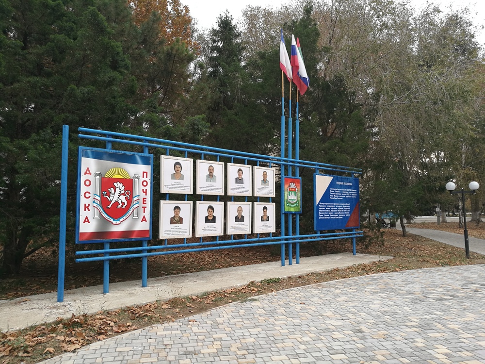 Вот и молодая парочка умостившись на лавочке у городской Доски почета нисколько не смущается.