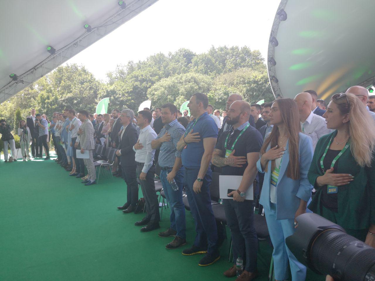 Ботанический сад – неожиданное место для проведения съезда партии. Хотя для партии Зеленского – в самый раз. Тут много всего "Зе": зеленые зонты, палатки, тенты – и растительная зелень вокруг. Многие гости тоже оделись в зеленое, без слов маркируя свою политическую принадлежность.