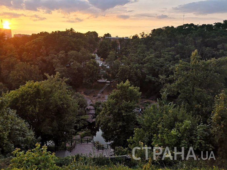 Речка Уж, пересекающая парк, отбрасывает блики на огромные каменные валуны, которые, были здесь и тогда, когда этот город был сожжен из-за мести.