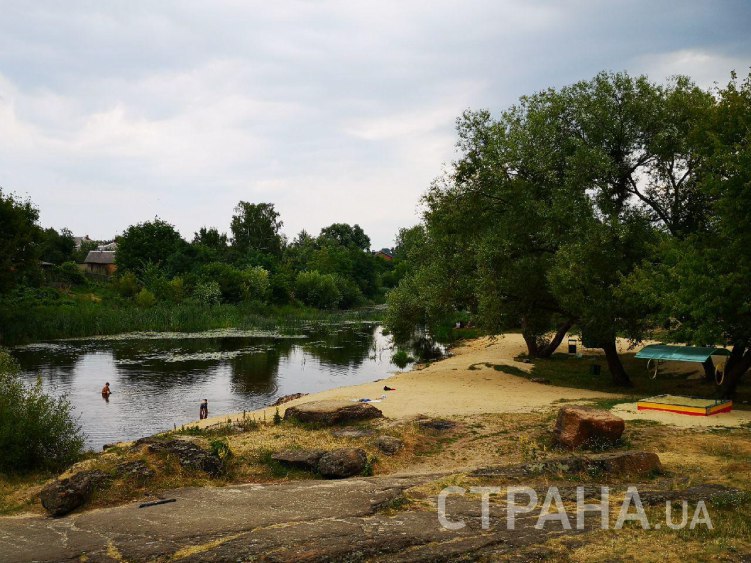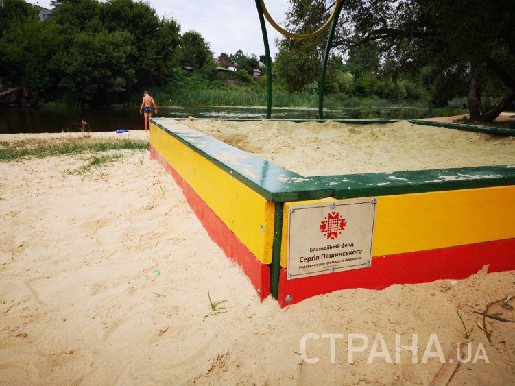 Так выглядит "облагороженный Пашинским" пляж в Коростене. На деле это кусок берега длиной метров 30, куда насыпали песка, поставили несколько урн и детских песочниц