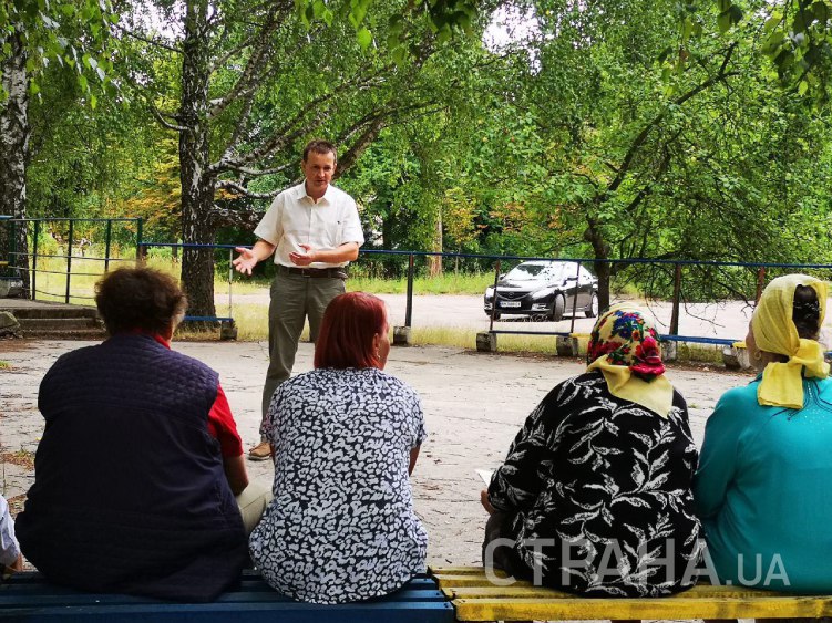 Здесь, в поселке Грозино, в нескольких километрах от Коростеня, встречу с избирателями проводит кандидат от "Слуги народа" – Вячеслав Сигачев.