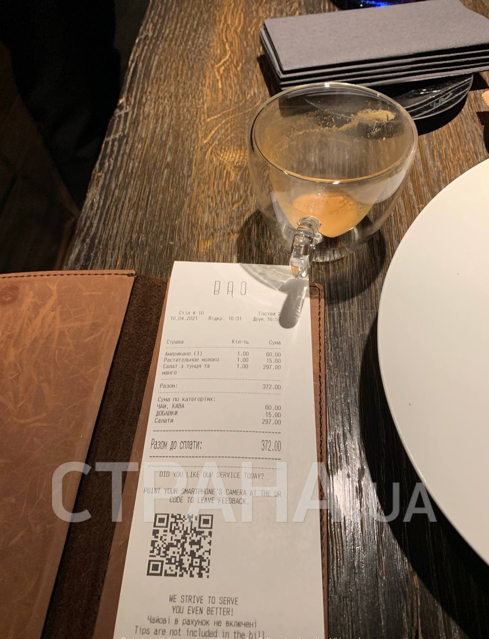 Расчетный счет и чек в ресторане BAO. Фото: "Страна"