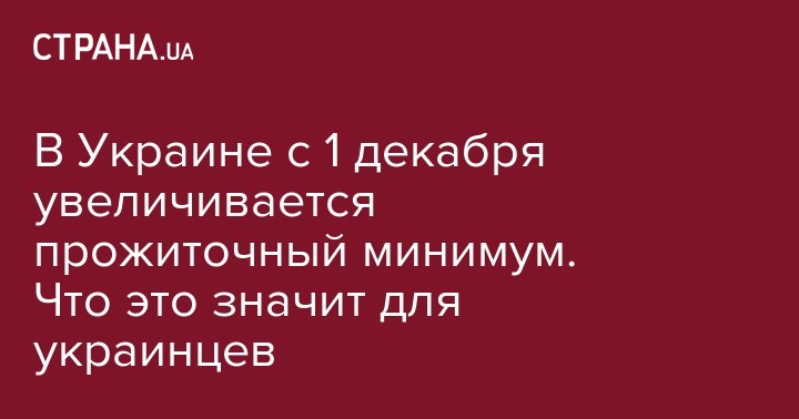 Сегодня, 1 декабря, в Украине увеличиваются размер прожиточного минимума.