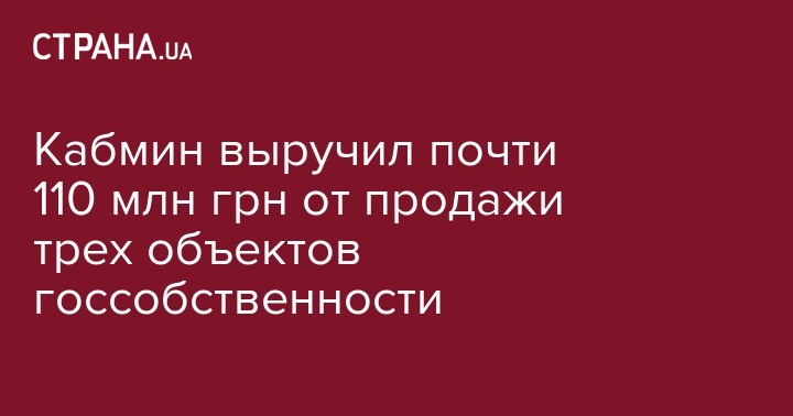 Кабмин выручил почти 110 млн грн от продажи трех объектов госсобственности