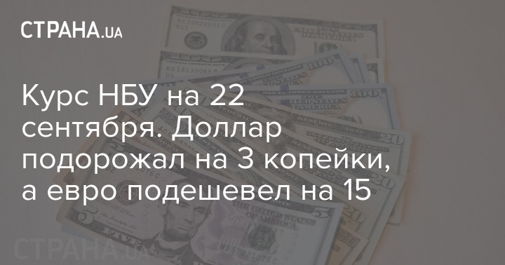Курс НБУ на 22 сентября. Доллар подорожал на 3 копейки, а евро подешевел на 15