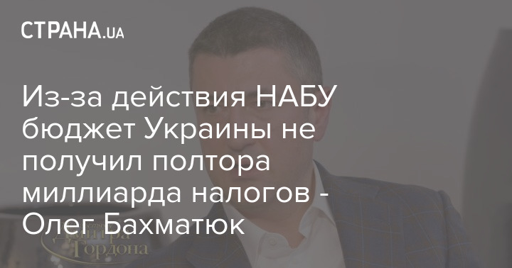 Из-за действия НАБУ бюджет Украины не получил полтора миллиарда налогов - Олег Бахматюк