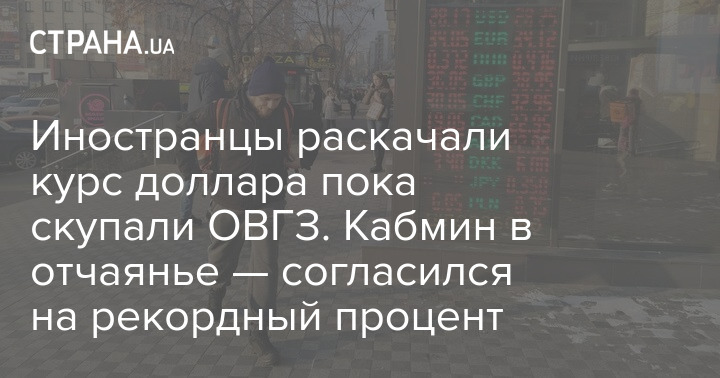 "Иностранцы понимают, что нынешний курс доллара - это пик, и выше он уже не будет. Будет только удешевление валюты. Потому сейчас лучший момент для вложений в ОВГЗ. Ведь последующее укрепление будет добавлять к купонной доходности бумаг, еще и заработок на курсовой разнице. Потому нерезиденты и разбирали сегодня долгосрочные ОВГЗ", - объяснил "Стране" мотивацию нерезидентов финансовый аналитик Василий Невмержицкий.