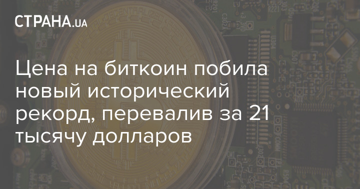 Цена на криптовалюту биткоин обновила исторический максимум. Впервые она поднялась выше отметки в 21 тысячу долларов.