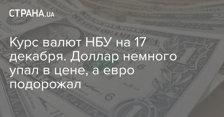 Курс валют НБУ на 17 декабря. Доллар немного упал в цене, а евро подорожал