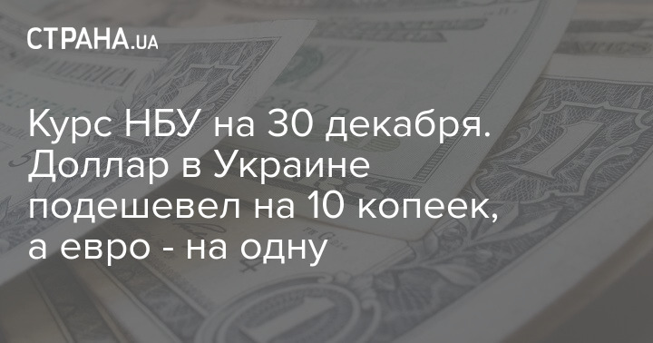 Курс НБУ на 30 декабря. Доллар в Украине подешевел на 10 копеек, а евро - на одну