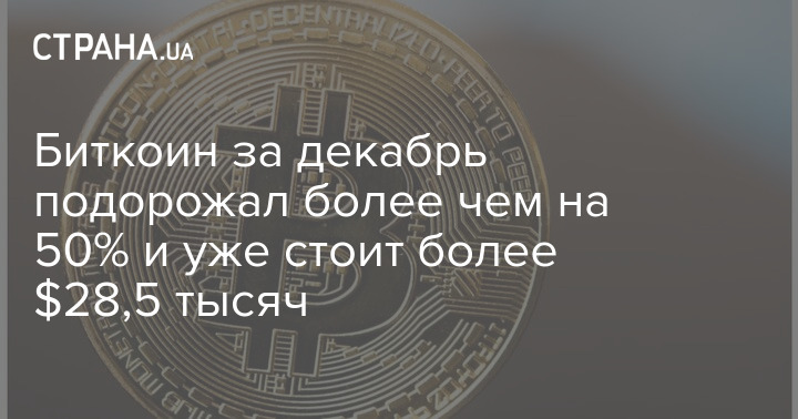 Курс биткоина установил новый рекорд на торгах в среду, 30 декабря, и таким образом завершает год ростом почти на 50%. Это самая лучшая динамикой за месяц с мая 2019 года. 30 декабря стоимость криптовалюты подскочила в ходе торгов на 6,2% - до $28572,1.