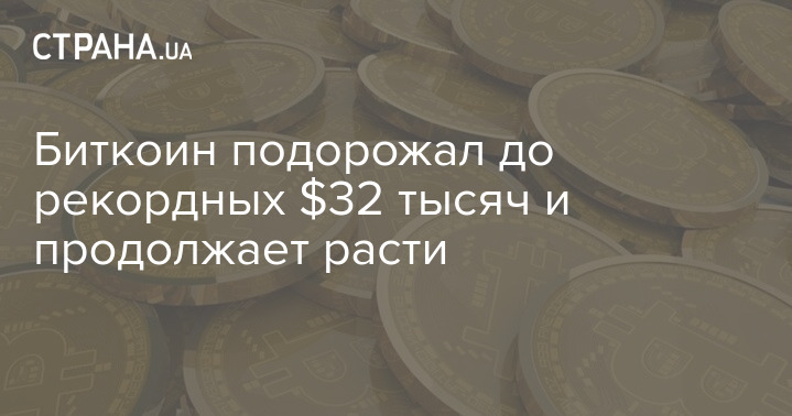 Биткоин подорожал до рекордных $32 тысяч и продолжает расти