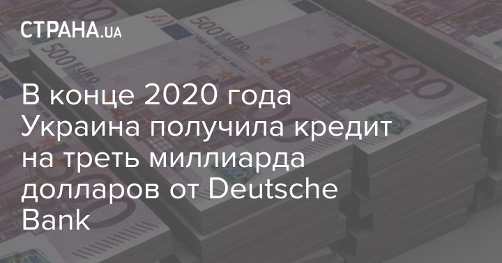 В конце 2020 года Украина получила кредит на треть миллиарда долларов от Deutsche Bank