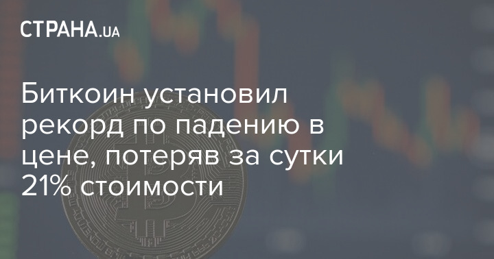 Курс биткоина за два дня показал самый большой спад, обновив свой прошлогодний рекорд. Всего за сутки криптовалюта потеряла 21%.