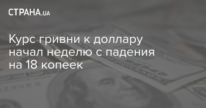 Курс гривни к доллару начал неделю с падения на 18 копеек