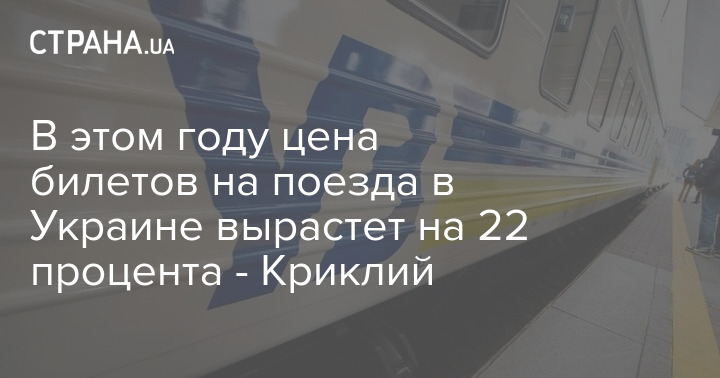 Министр инфраструктуры Украины Владислав Криклий подтвердил планы руководства "Укрзализныци" по повышению цен билетов на пассажирские поезда с марта этого года. Уже к декабрю рост стоимости составит 22%.