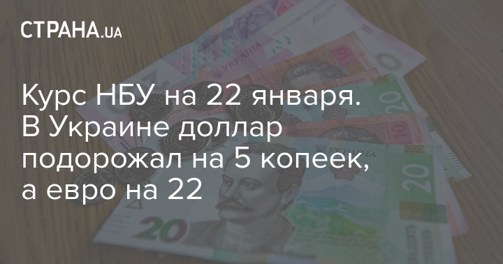 Курс НБУ на 22 января. В Украине доллар подорожал на 5 копеек, а евро на 22