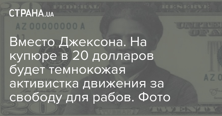 Вместо Джексона. На купюре в 20 долларов будет темнокожая активистка движения за свободу для рабов. Фото